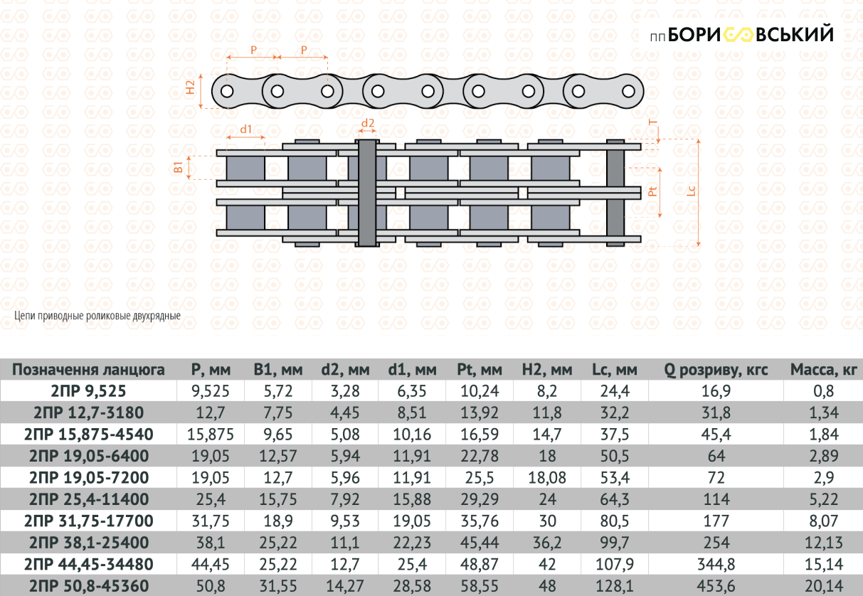Технічні характеристики дворядних ланюцгів